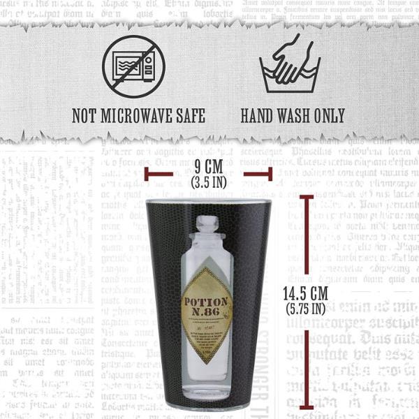 Riempi questo bicchiere con la tua bevanda preferita e lasciati stupire mentre la bottiglia trasparente della pozione assume il colore di qualunque bevanda tu abbia appena versato; lo sfondo avvolgente effetto pelle di serpente aggiunge un magico tocco finale