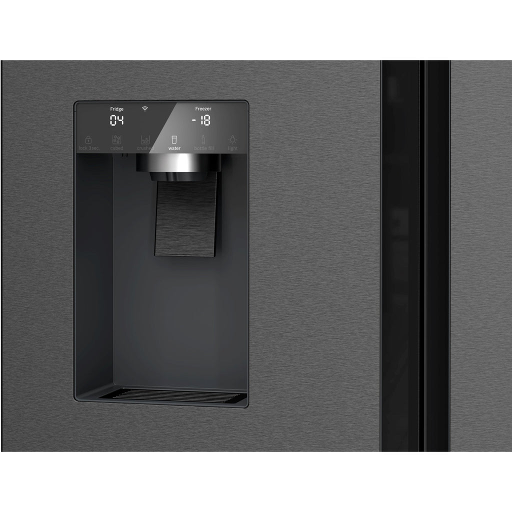 Bosch Serie 6 KFI96AXEA. Posizionamento dell'apparecchio: Libera installazione, Design del prodotto: Porta francese, Colore del prodotto: Nero, Acciaio inox. Capacità netta totale: 574 L, Classe climatica: SN-T, Classe emissione rumore: C. Capacità netta frigorifero: 375 L, Tipo di lampada: LED. Capacità netta congelatore: 199 L, Posizione del congelatore: Posto in basso, Capacità di congelamento: 16 kg/24h. Lunghezza cavo: 2,4 m, Applicazioni per il controllo supportate: Home Connect