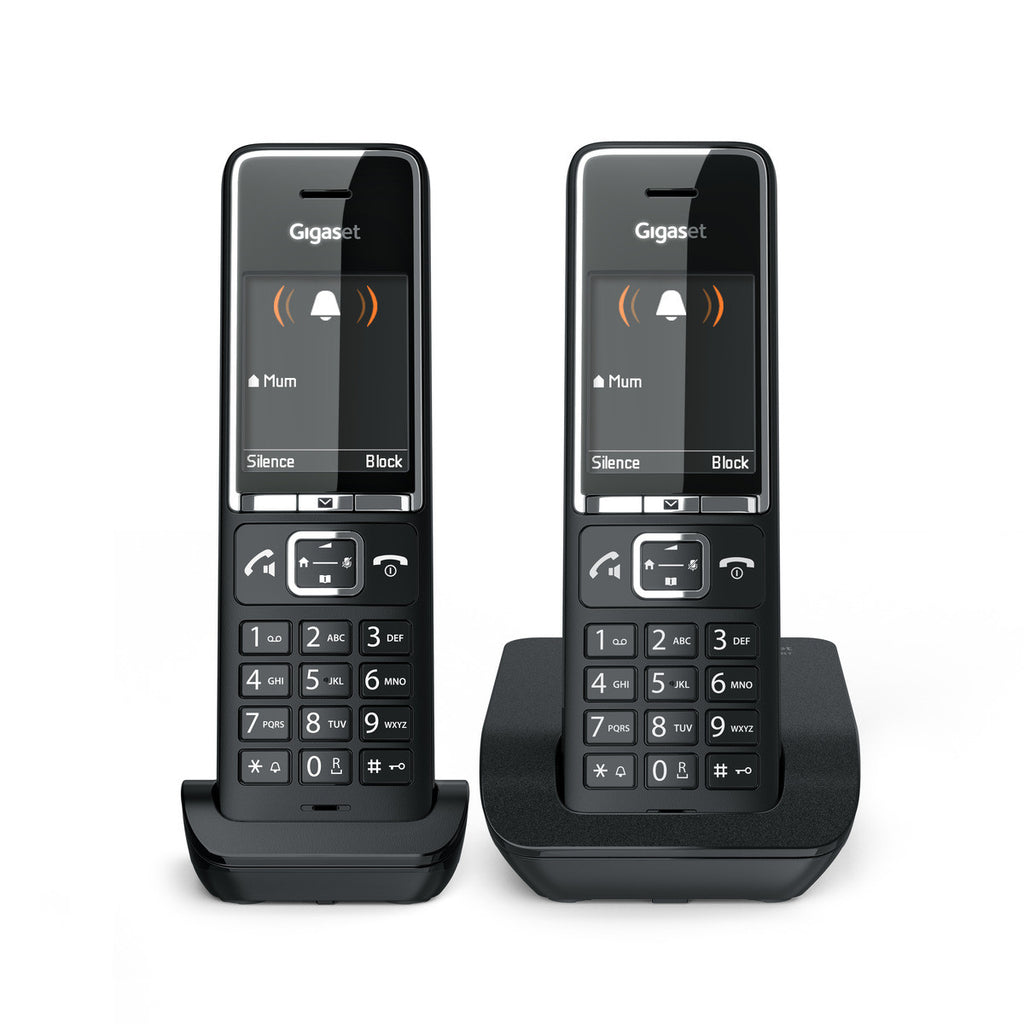 Design Elegante Black Chrome: Il Gigaset Comfort 550 Duo si distingue per il suo design senza tempo ed elegante con finitura nero cromata . Perfetto per integrarsi armoniosamente in ambienti domestici e professionali, unendo estetica e funzionalità .