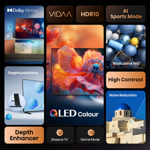 Vivi un'esperienza visiva indimenticabile con QLED Colour. Ogni montatura è ricca, vibrante e realistica, assicurando che ogni colore, dal più tenue al più vibrante, si distingua.