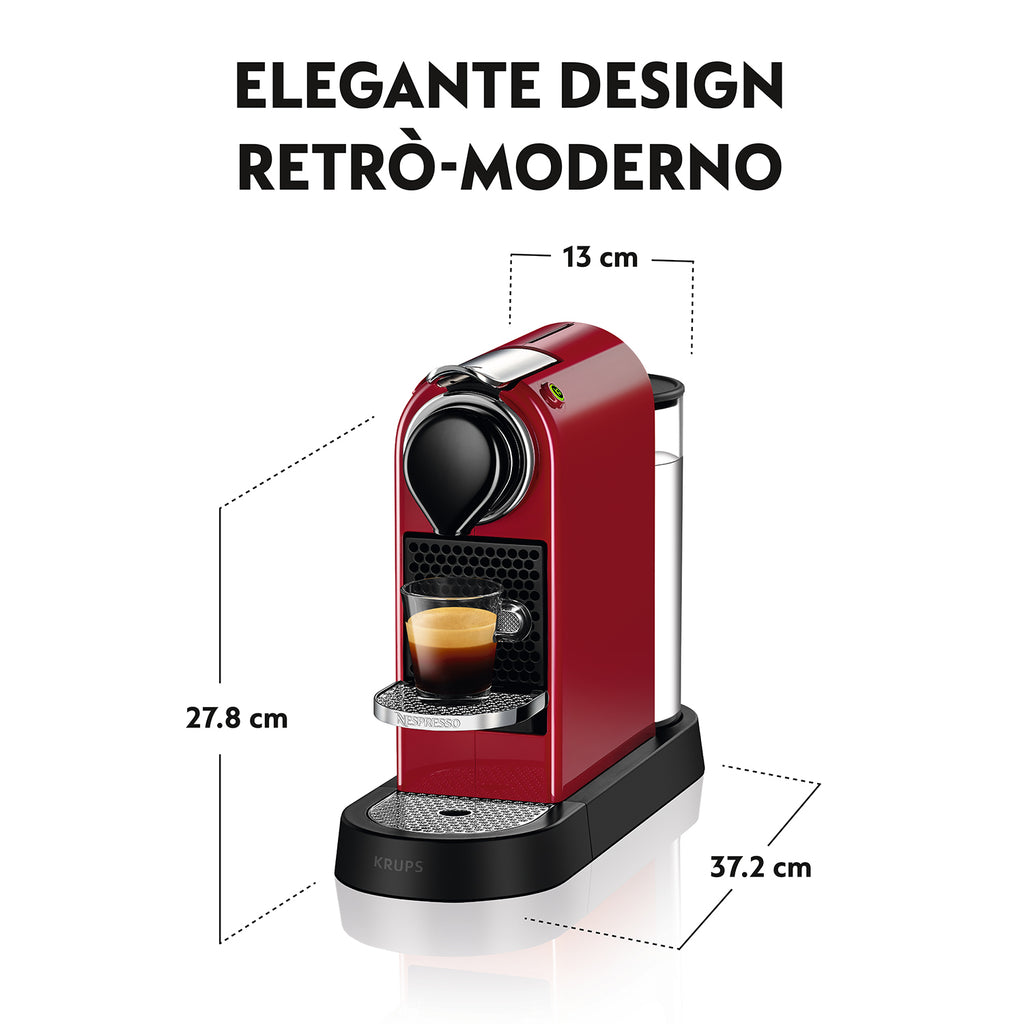 Ispirata a un design rétro-moderno, CitiZ macchina caffè capsule di Krups offre tutta l'esperienza Nespresso condensate in un prodotto divertente e intuitivo