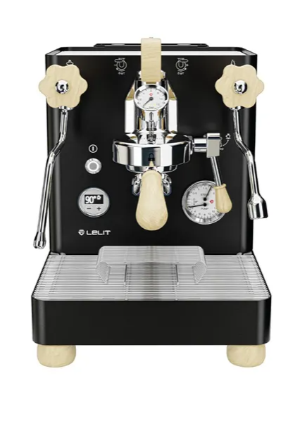 Lelit Bianca PL162T-EUCB nera macchina espresso professionale con doppia caldaia, controllo flusso manuale a paddle, gruppo L58E con manometro, PID e serbatoio esterno 2.5L. Dettagli in legno d'acero. Made in Italy. Acquista ora!