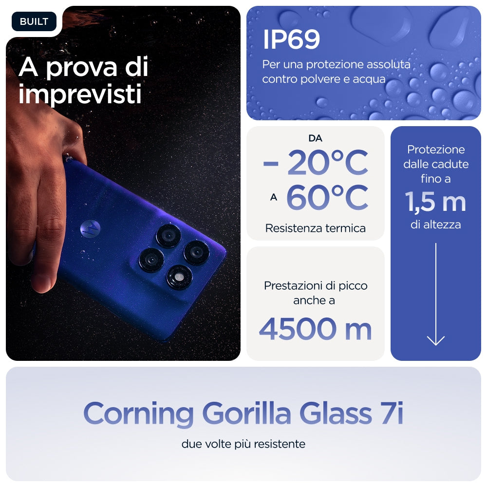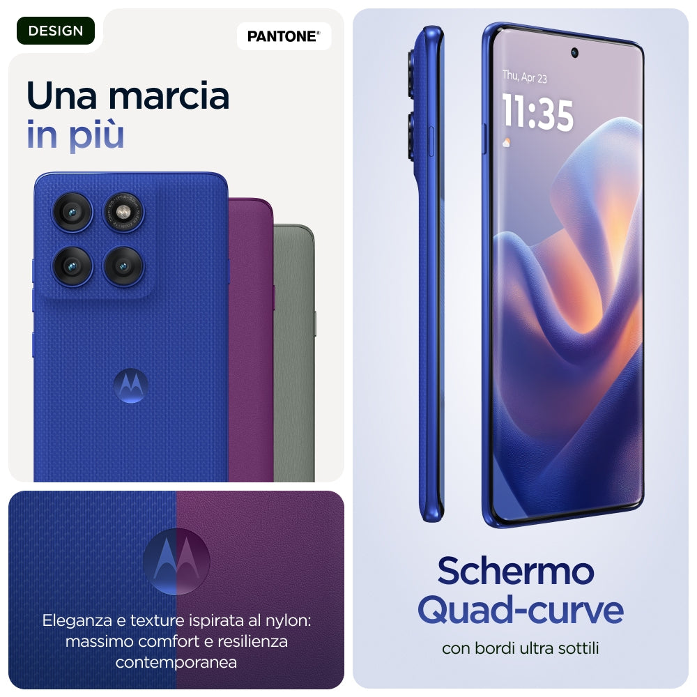 Se cerchi il top nella qualità e nella cura dei dettagli, ti presentiamo Motorola Edge 60 Pro. Il bellissimo design quad-curved, le finiture dal tocco delicato e i colori selezionati da Pantone® ne fanno un'icona di stile e comfort. Inquadra e cattura con istantanea semplicità foto e video di livello professionale. Valorizza la tua creatività e facilita le tue interazioni quotidiane con l'assistenza discreta di Moto AI. Conta su un prodotto d'eccellente fattura con un design resistente, protetto per l'immersione in acqua(1) e conforme alle specifiche militari.(2) Esplora senza soste con oltre 45 ore di durata della batteria.(4) Immergiti nell'intrattenimento sul display Super HD (1220p) da 6,7\" con audio Dolby Atmos®. Sfrutta al massimo le prestazioni ottimizzate dall'intelligenza artificiale integrata. Approfitta delle funzionalità Moto per esaltare la tua libertà creativa, interagire con assoluta facilità e muoverti in tutta tranquillità. Find your edge: scegli Motorola Edge 60 Pro.