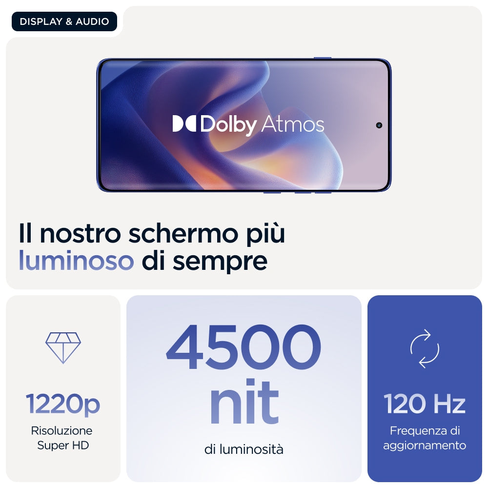 - Massima luminosità del display (HDR): 4500 cd/m²