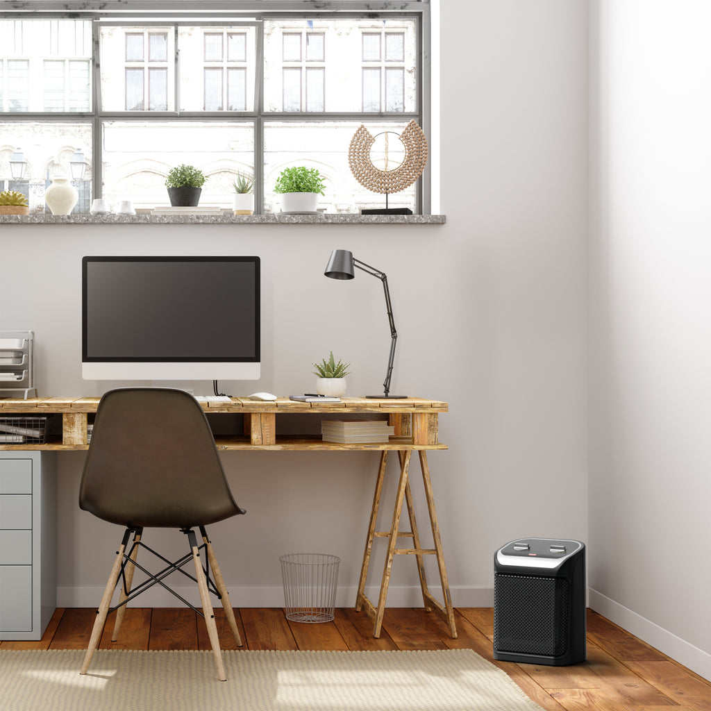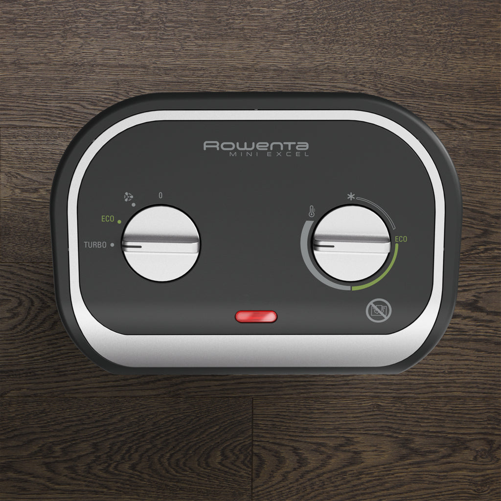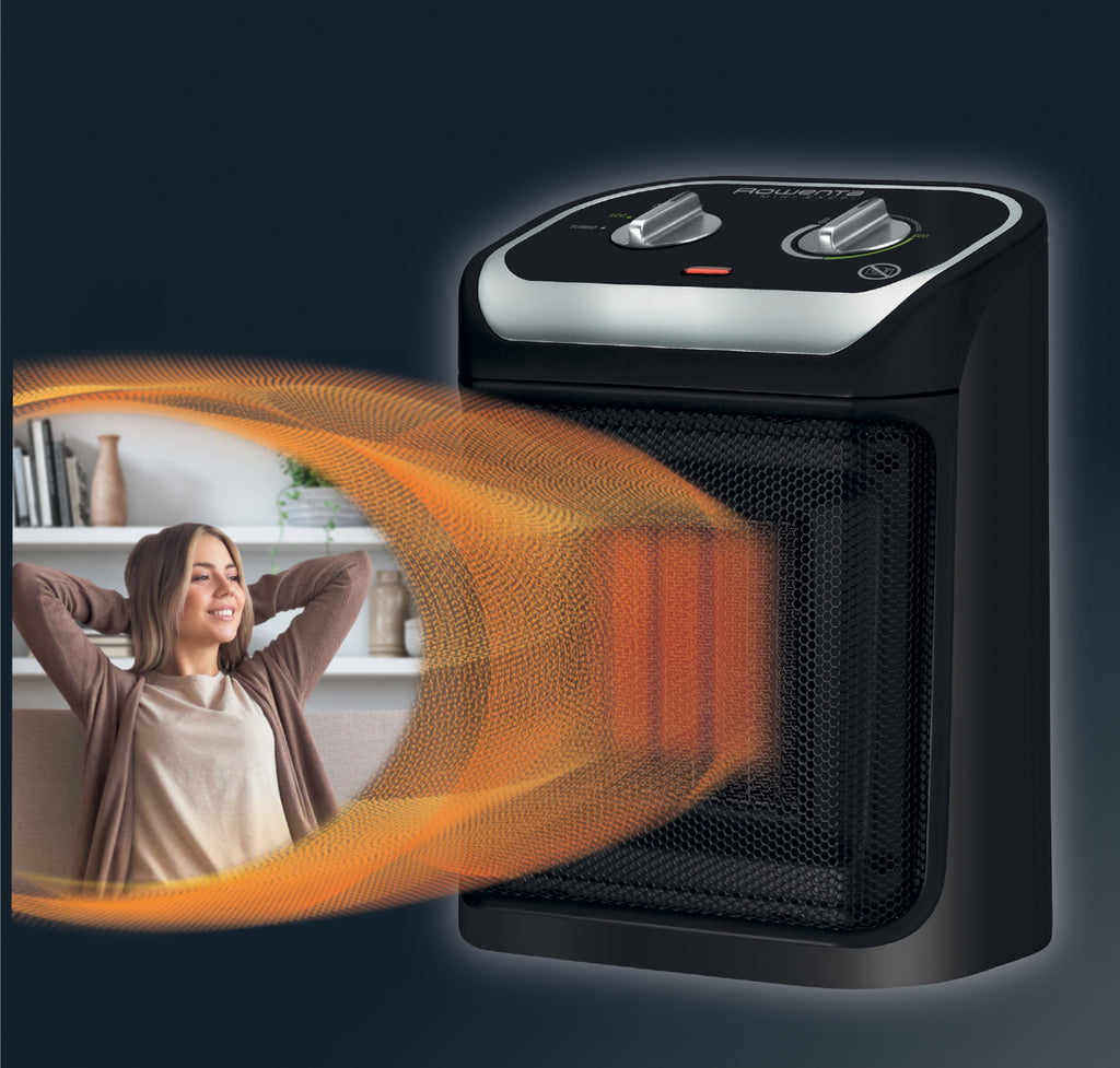 Rowenta Mini Excel SO9261. Tipo: Riscaldatore ambiente elettrico con ventilatore, Tipologia elemento riscaldante: Ceramica, Lunghezza cavo: 1,5 m. Adatto per: Interno, Opzioni di posizionamento: Scrivania, Tavolo, Colore del prodotto: Nero. Potenza termica: 1800 W, Potenza termica (min): 1000 W, Adatto per stanze fino a: 35 m². Potenza: 1800 W, Tensione di ingresso AC: 220–240, Frequenza di ingresso AC: 50 Hz. Larghezza: 141 mm, Profondità: 201 mm, Altezza: 261 mm