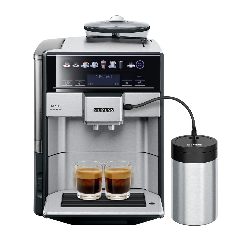 Siemens EQ.6 plus. Tipo di prodotto: Macchina per espresso, Tipologia macchina del caffé: Automatica, Capacità tanica acqua: 1,7 L, Tipologia di caffè utilizzato: Chicchi di caffè, Caffè macinato, Vaschetta per caffè preparato: Tazza, Capacità in tazze: 2 tazze, Numero di erogatori: 2, Macinatore integrato. Tipo di display: LCD. Potenza: 1500 W. Colore del prodotto: Nero, Acciaio inox