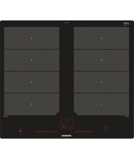 Siemens EX601LXC1E. Colore del prodotto: Nero, Posizionamento dell'apparecchio: Da incasso, Tipo di piano cottura: Piano cottura a induzione. Bruciatore piccolo: 2200 W, Bruciatore medio: 2200 W. Tipo di controllo: Touch, Posizione di controllo: Frontale superiore. Potenza aggregata (elettrica): 7400 W, Tensione di ingresso AC: 220-240 V, Frequenza di ingresso AC: 50 - 60 Hz. Larghezza: 572 mm, Profondità: 512 mm, Altezza: 56 mm