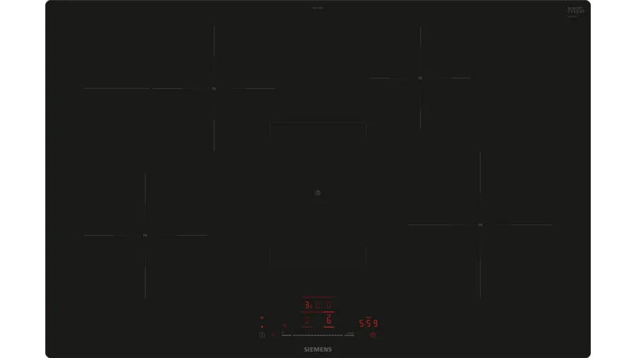 Siemens iQ300 EH801HFB1E. Colore del prodotto: Nero, Posizionamento dell'apparecchio: Da incasso, Dimensione della larghezza del piano cottura: 80 cm. Tipo di controllo: Touch, Posizione di controllo: Frontale superiore, Tipo di orologio: Elettronico. Potenza aggregata (elettrica): 7400 W, Tensione di ingresso AC: 220 - 240 V, Frequenza di ingresso AC: 50/60 Hz. Larghezza: 792 mm, Profondità: 512 mm, Altezza: 56 mm. Larghezza imballo: 950 mm, Profondità imballo: 600 mm, Altezza imballo: 130 mm