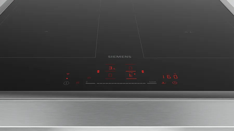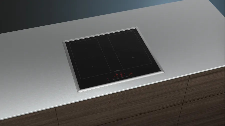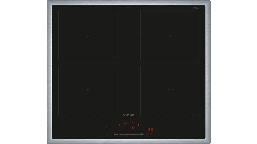 Siemens iQ500 ED645HQC1E. Colore del prodotto: Nero, Acciaio inox, Posizionamento dell'apparecchio: Da incasso, Dimensione della larghezza del piano cottura: 60 cm. Tipo di controllo: Touch, Posizione di controllo: Frontale superiore, Tipo di orologio: Elettronico. Potenza aggregata (elettrica): 7400 W, Tensione di ingresso AC: 220 - 240 V, Frequenza di ingresso AC: 50/60 Hz. Larghezza: 583 mm, Profondità: 513 mm, Altezza: 55 mm. Peso dell'imballo: 13,8 kg