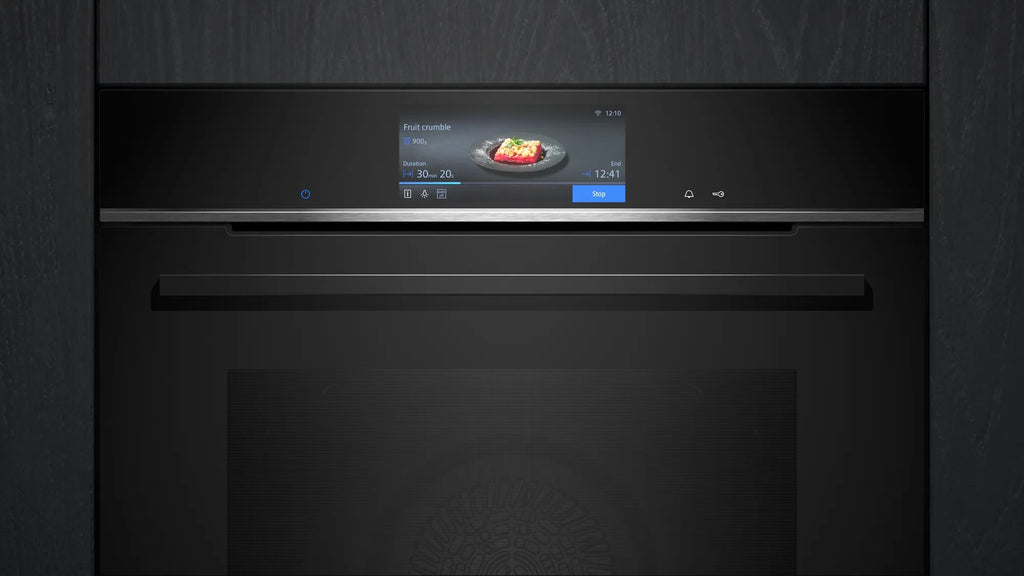 Siemens iQ700 HB778G3B1. Dimensione del forno: Media, Tipo di forno: Forno elettrico, Capacità interna forno totale: 71 L. Posizionamento dell'apparecchio: Da incasso, Colore del prodotto: Nero, Acciaio inox, Tipo di controllo: Touch. Tipo di orologio: Elettronico, Applicazioni per il controllo supportate: Home Connect. Classe efficienza energetica: A+, Consumo energetico (convenzionale): 0,87 kWh, Consumo energetico (convezione forzata): 0,69 kWh. Quantità lampade: 1 lampada(e), Tipo di lampada: LED