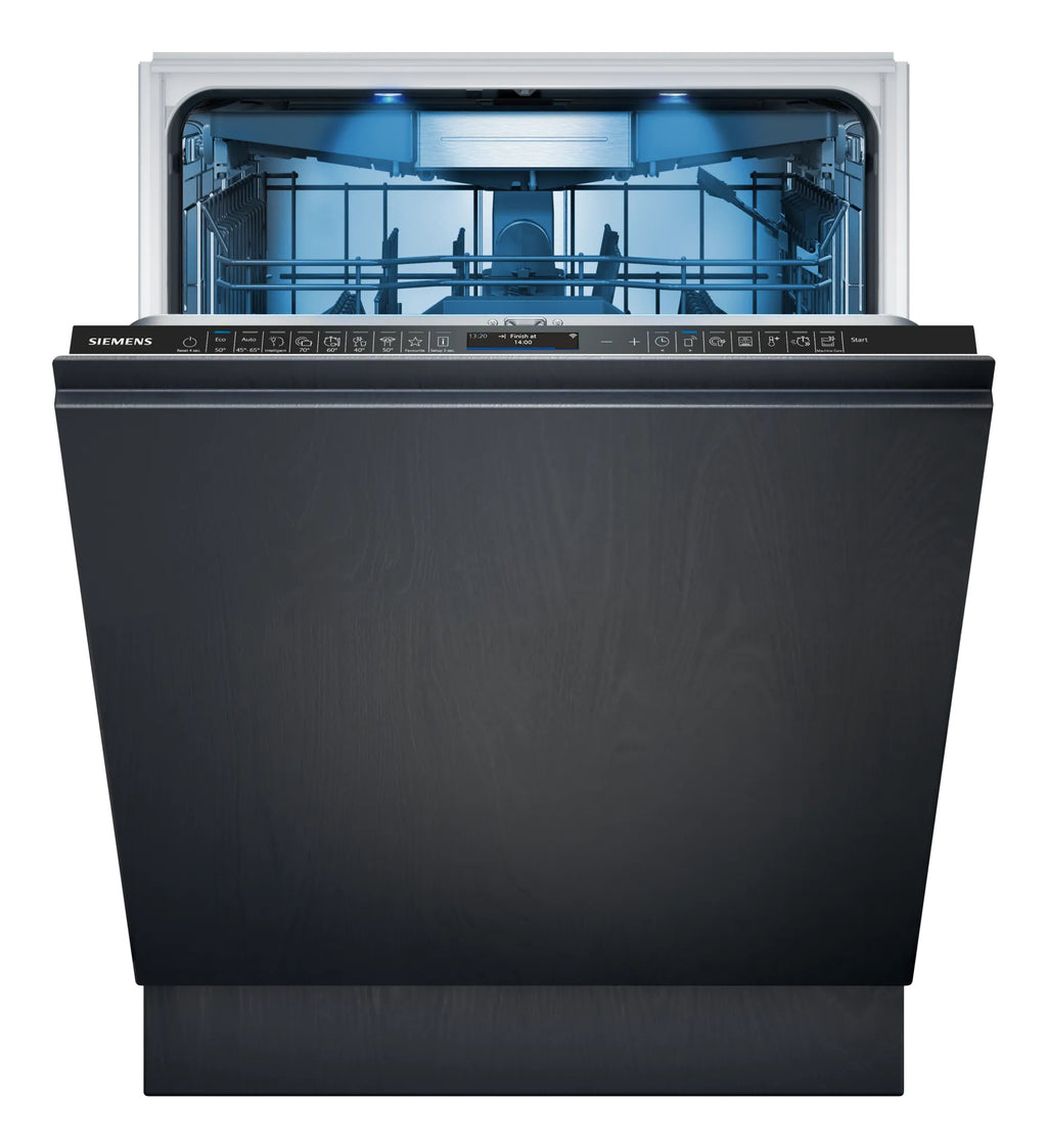 Siemens iQ700 SN87TX02CE. Posizionamento dell'apparecchio: A scomparsa totale, Dimensione: Dimensione massima (60 cm), Colore pannello di controllo: Nero. Numero di coperti: 14 coperti, Classe emissione rumore: B, Emissione acustica: 42 dB. Classe efficienza energetica: A, Consumo di acqua per ciclo: 9,5 L, Consumo energetico per 100 cicli: 54 kWh. Larghezza: 598 mm, Profondità: 550 mm, Altezza: 815 mm