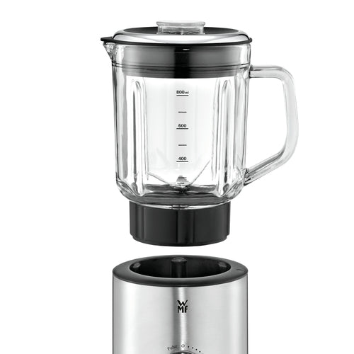 WMF KITCHENminis 0416490011. Tipo: Frullatore da tavolo, Colore del prodotto: Nero, Acciaio inox, Trasparente. Capacità ciotola: 0,8 L, Velocità (massima) di rotazione: 20000 Giri/min, Tipo di controllo della velocità: A gradini. Materiale della ciotola di miscelazione: Vetro, Materiali: Acciaio inox. Potenza: 400 W, Alimentazione: AC, Tensione di ingresso AC: 220 - 240 V. Larghezza: 142 mm, Profondità: 180 mm, Altezza: 310 mm