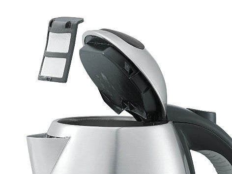 WMF Stelio 0413010012. Capacità tanica acqua: 1,2 L. Potenza: 2400 W. Colore del prodotto: Nero, Acciaio inox, Materiale della scocca: Acciaio inox, Plastica, Indicatore del livello dell'acqua, Arresto di sicurezza contro il surriscaldamento. Senza filo. Filtro